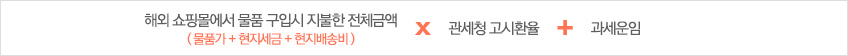 ※ 과세운임은 물품의 구입시 결제금액이 20만원 이하일 경우에는 선편 일반소포과세운임이 적용되며, 20만원을 초과하는 경우에는특급탁송화물운임이 적용됩니다.