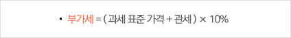 - 과세표준가격에 관세,특별소비세,농특세,교육세,주세 등을 합산한 금액의 10%입니다.